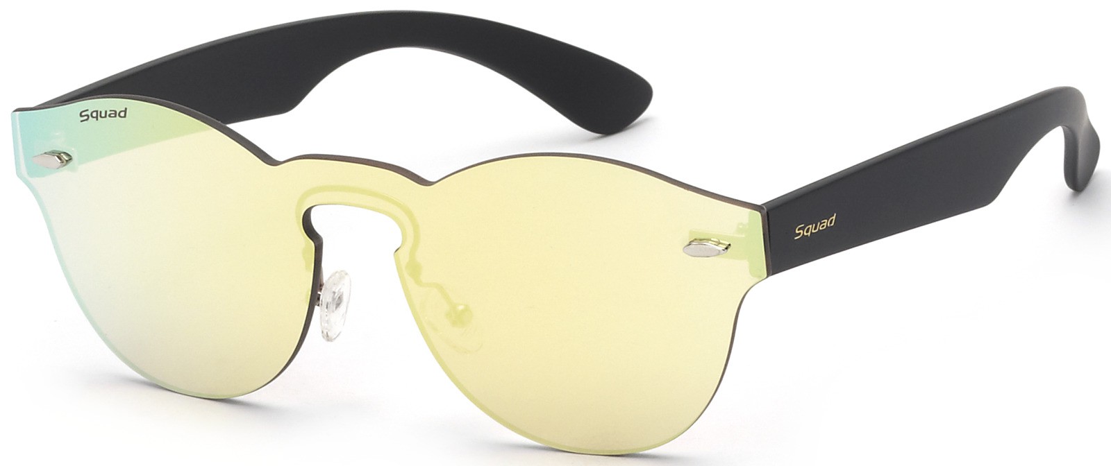 Gafas de sol para mujeres con montura negra y máscara frontal de lente rosa espejada